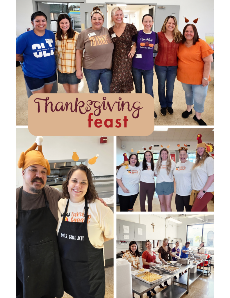 We celebrated as a school and parish community on Friday, November 21st. We extend our heartfelt thank you to HSA, the volunteers, staff, families, and Chef Jeff and Ms. Chef Jeff who came together to celebrate OLL’s 2025 Thanksgiving Feast!